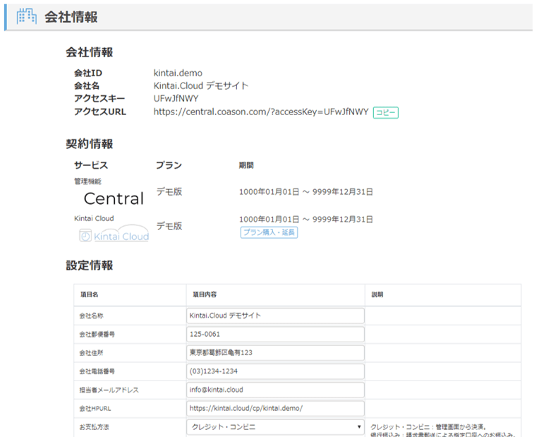 会社情報(各種設定)¶