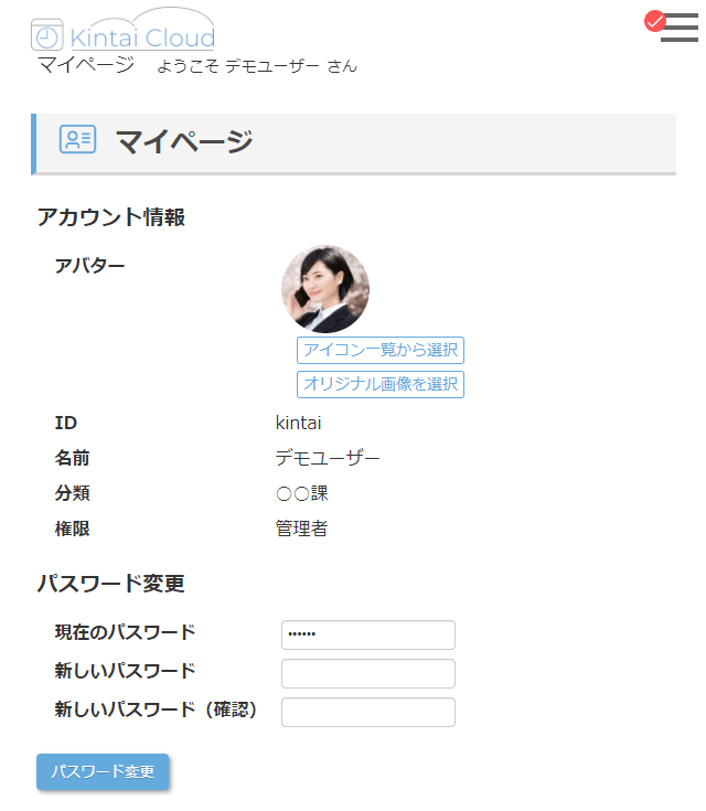 マイページで変更できるのはアバターとパスワードのみです。
