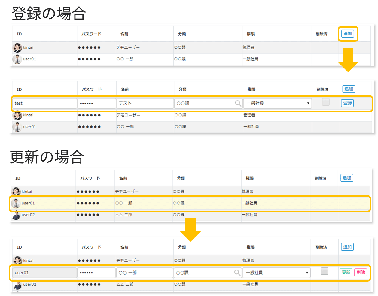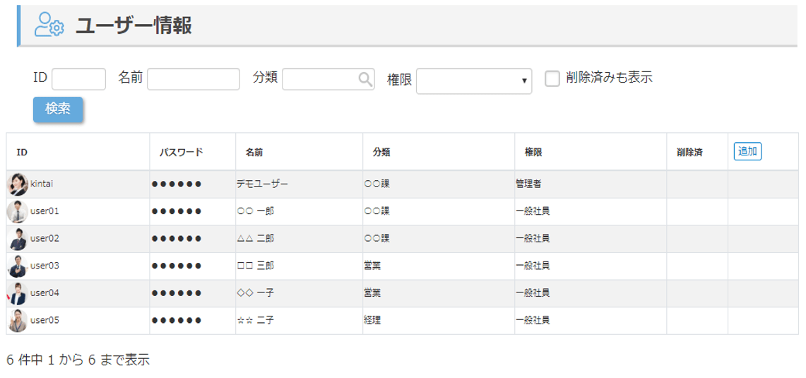 検索、登録・更新の基本操作は上述のユーザーと同じです。